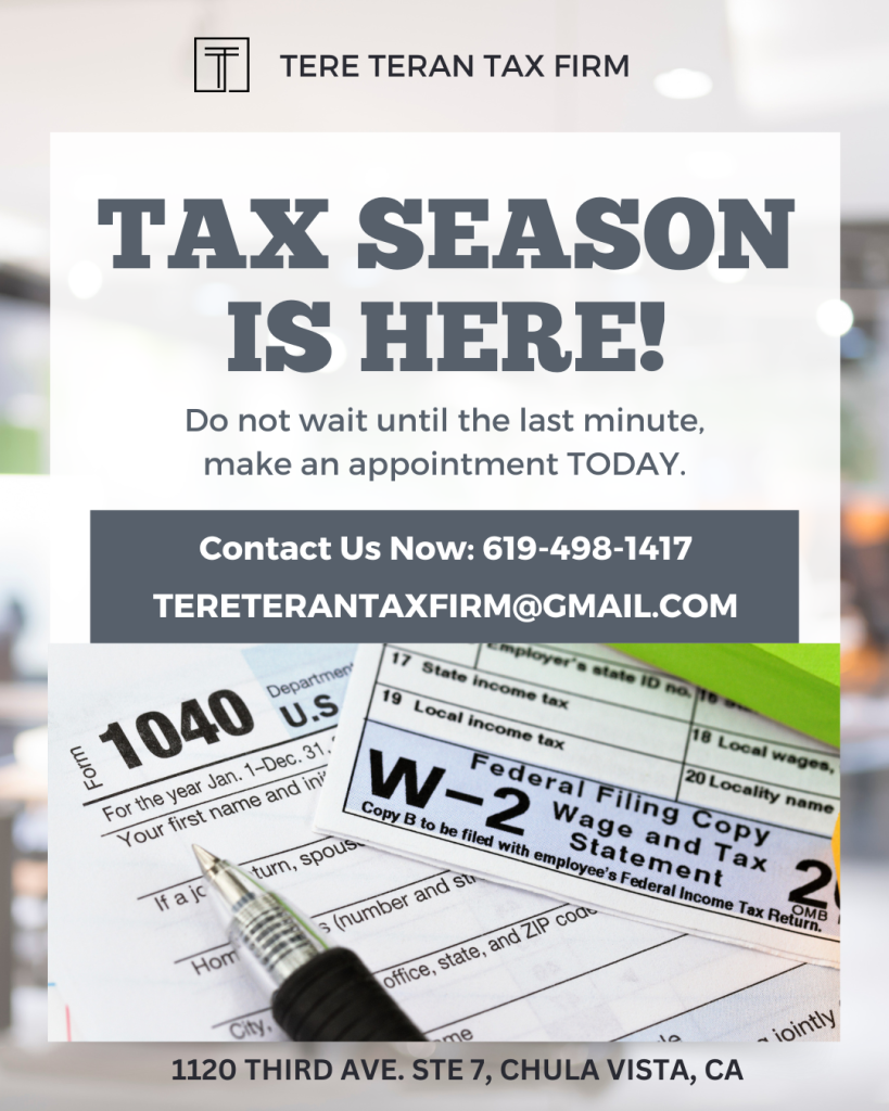 Tere Teran Tax Firm is here to make tax season easier for you. Whether you’re filing personal taxes, managing your business taxes, or need expert advice, our experienced team has got you covered. We offer personalized solutions to help you save money, stay compliant, and plan for the future.